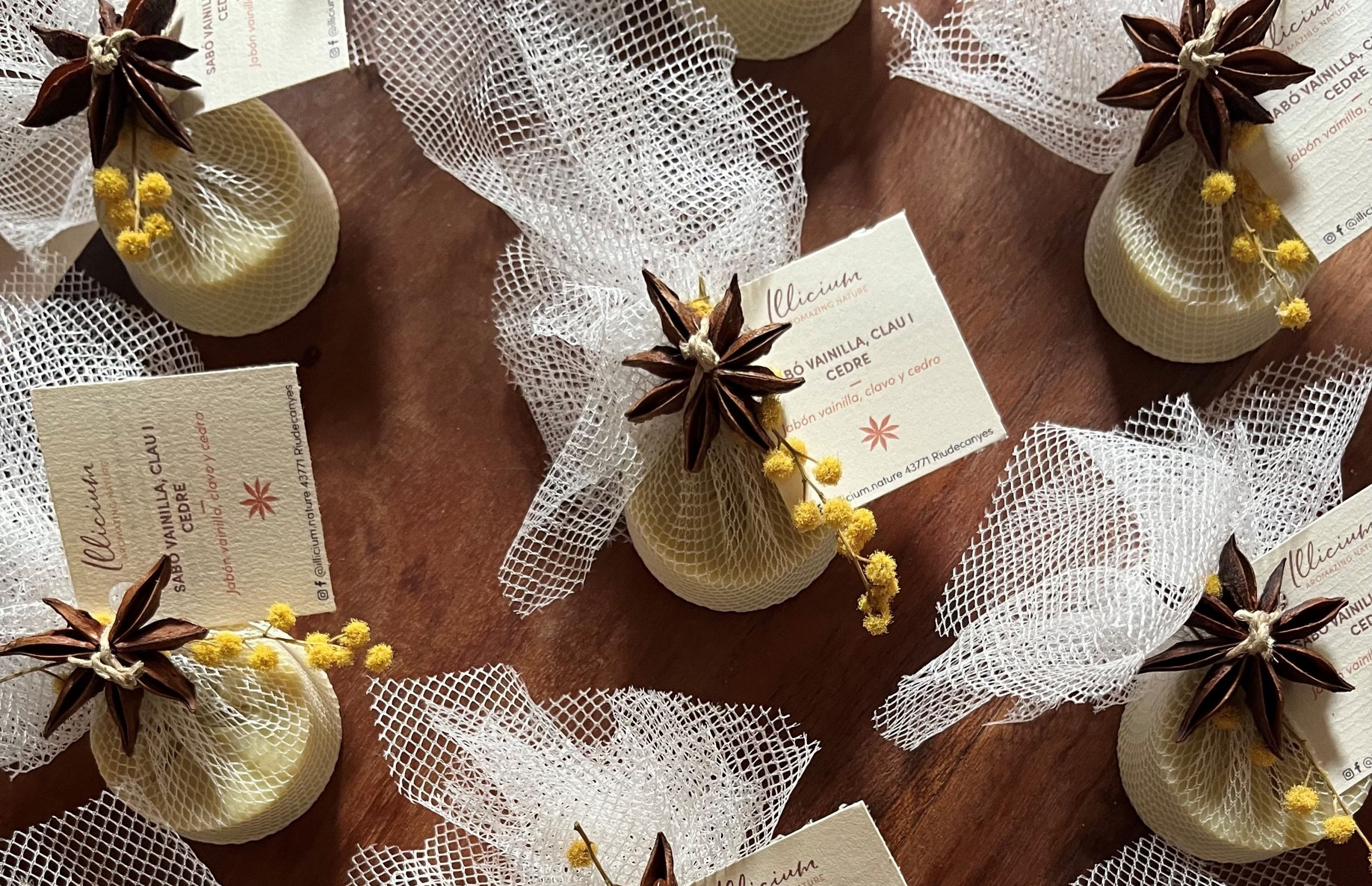 Our handcrafted solid products are a beautiful way to thank your guests for sharing such an important moment with you. Each piece is carefully wrapped in soft tulle and finished with a personalized tag featuring your names, date, and a heartfelt message.
